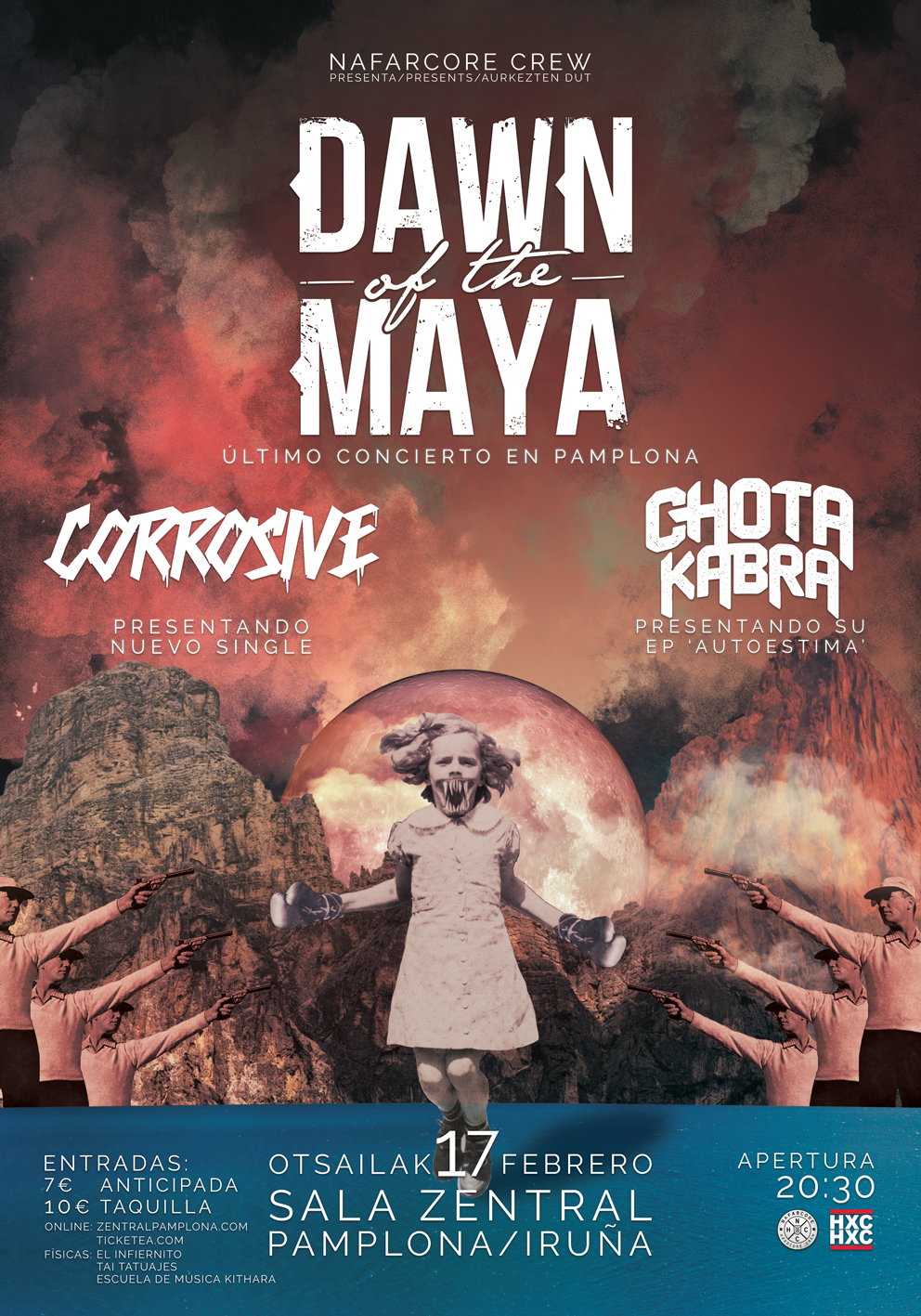 El 17 de febrero la Sala Zentral acogerá una fiesta de las que hacen época, de las que te pierdes y lo recuerdas de por vida. El estandarte del hardcore pamplonés dará su último concierto en nuestra ciudadante su gente, la misma que se volcó con el grupo en la presentación de su último disco "Colossal" hace menos de un año en el mismo recinto. Recordamos aquella velada como una de las mejores, si no la mejor que hemos tenido el honor de presenciar en Iruña en cuanto a nuestro estilo musical se refiere.